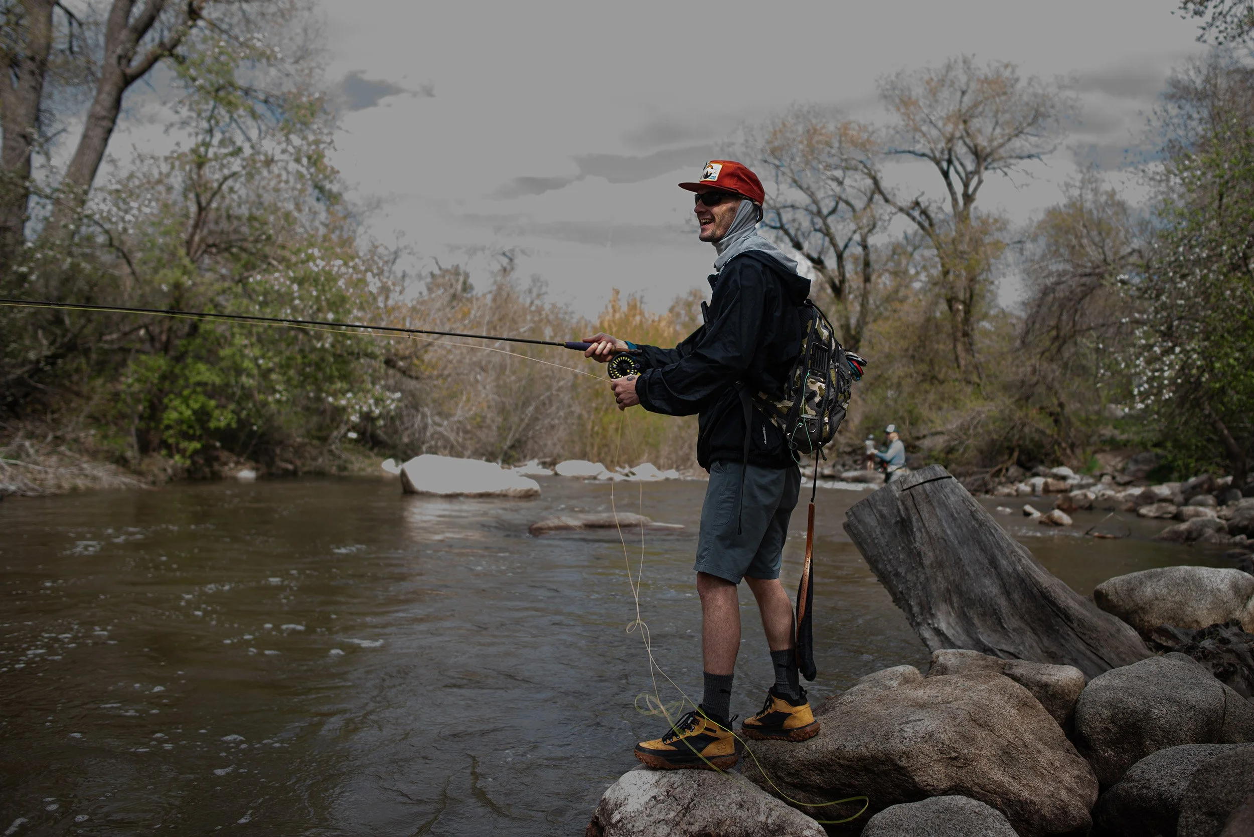 Jim, a practiced fisherman, throws his line into Boulder Creek at Eben G. Fine Park on April 29, 2024. (Jillian Vallance)